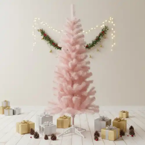 Make a unique style statement this holiday season with this beautiful blush pink artificial Christmas tree. Its soft, unconventional color provides a modern and chic canvas for your favorite ornaments.