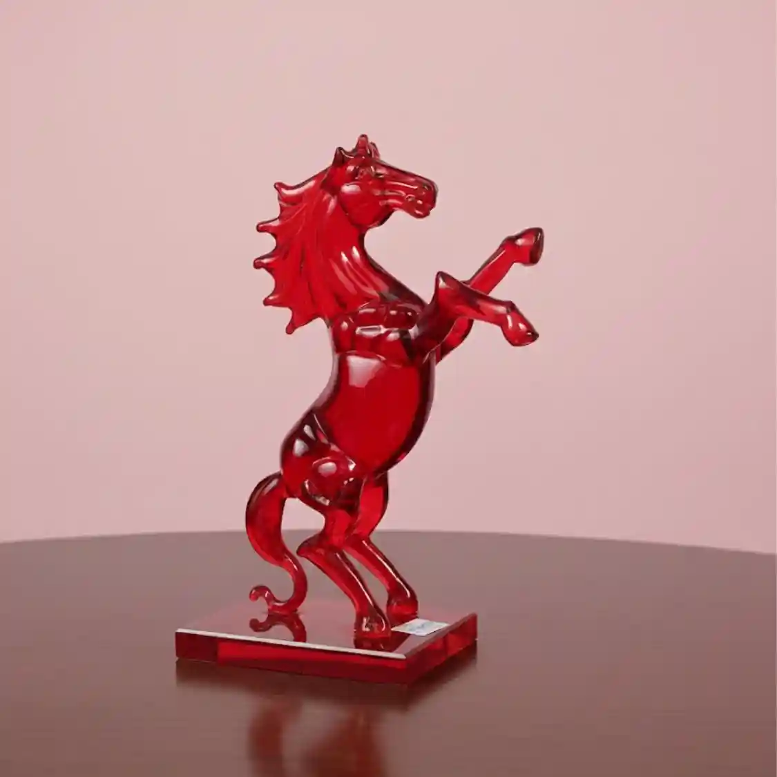 Crafted from a vibrant, translucent red material, this statue captures the majestic energy of a horse in motion. The light plays beautifully through its form, creating a stunning visual effect. Mounted on a solid matching base, it’s a bold accent for any office, study, or living area.