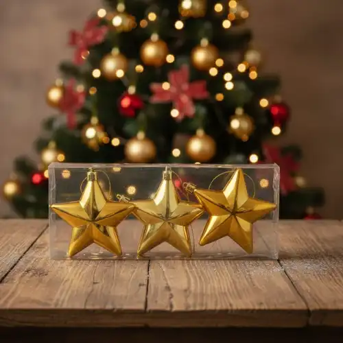 Add a warm and festive glow to your tree with this set of three gleaming gold star ornaments. Their classic shape and bright finish make them a perfect addition to any holiday decorating theme.