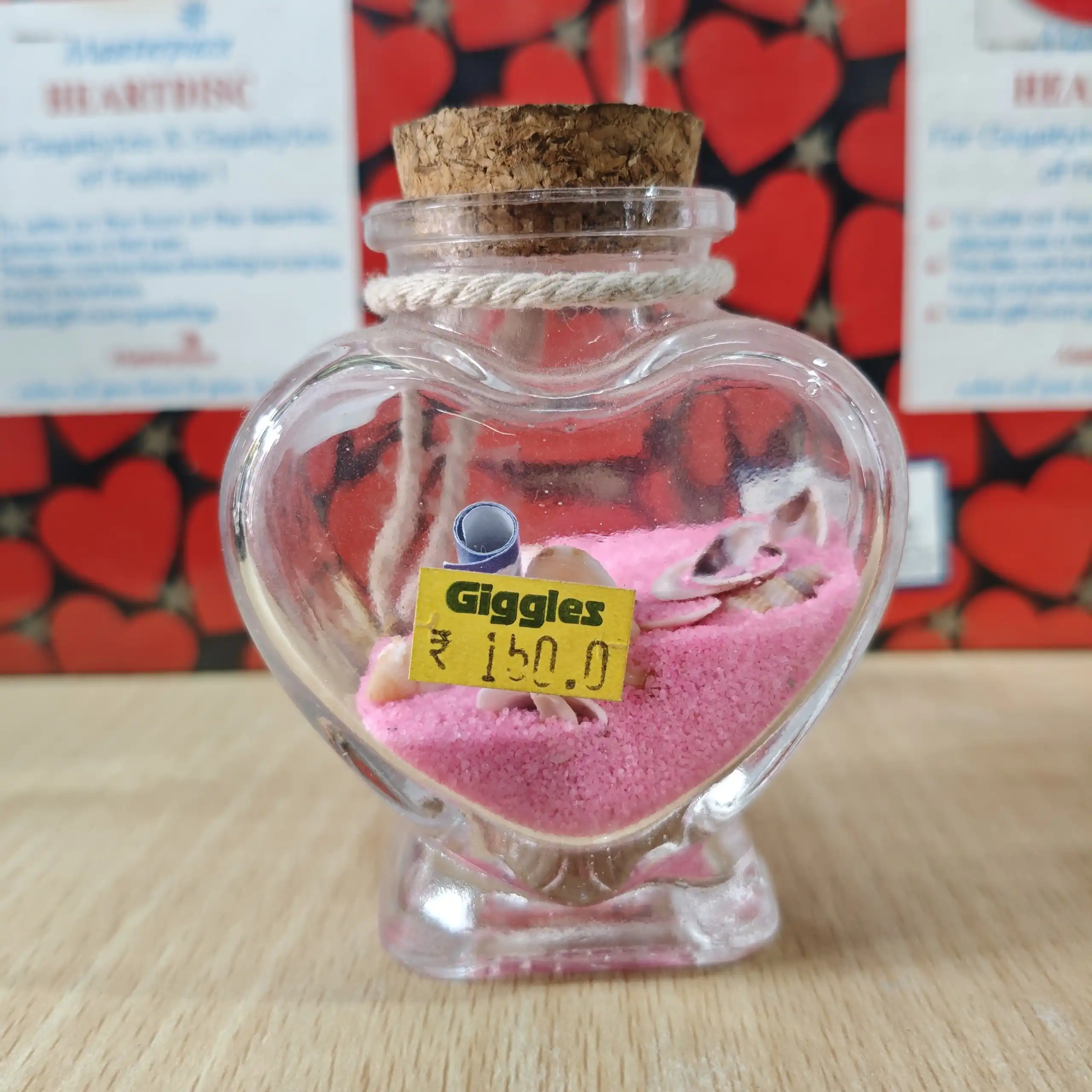 Capture the essence of a tranquil beach with this heart-shaped glass vessel. Filled with vibrant pink sand, natural seashells, and a parchment scroll for your private message, it’s a whimsical and deeply personal way to say ‘I love you.’