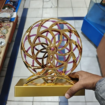A mesmerizing fusion of science and art. This golden gyroscope-inspired sculpture rotates with a hypnotic grace, perfect for those who appreciate the beauty of motion. A sophisticated gift for birthdays or corporate milestones.